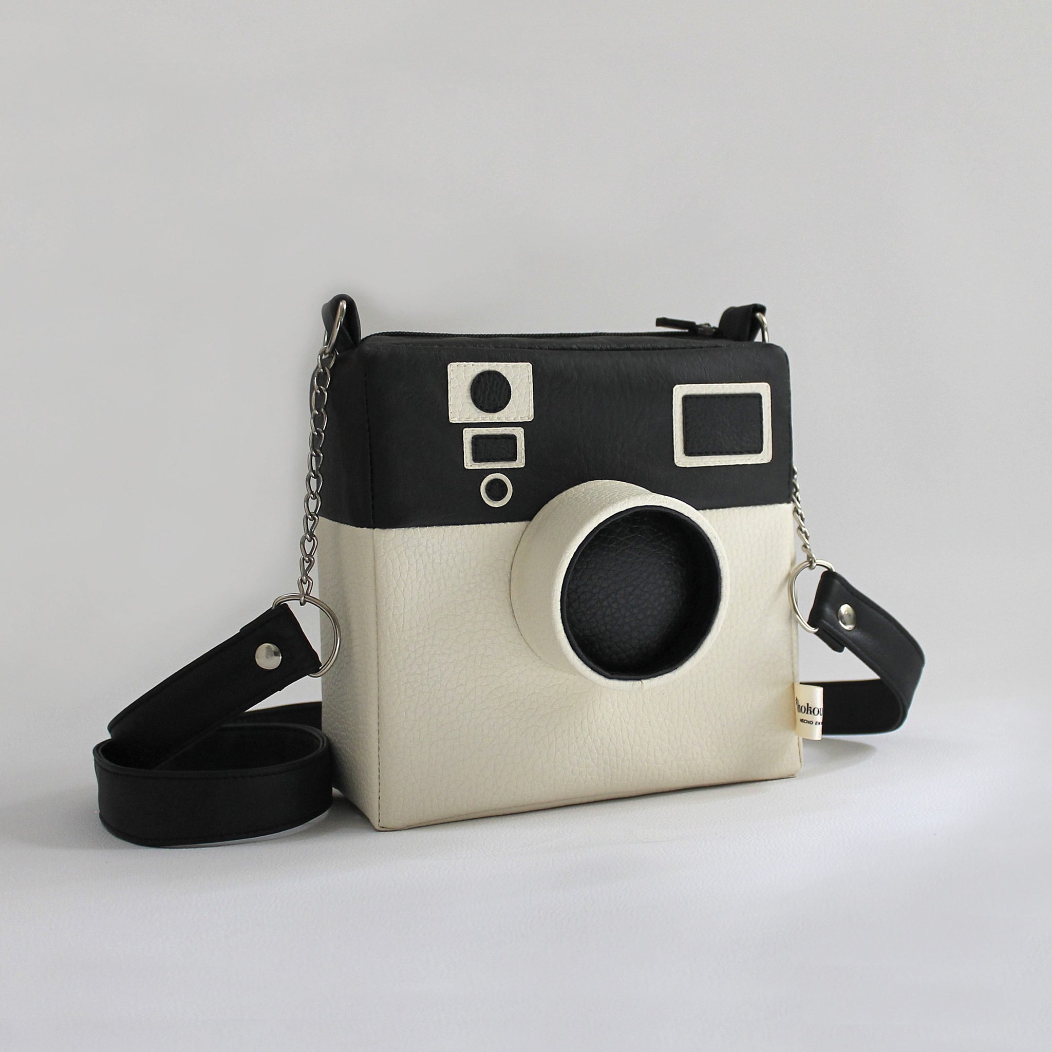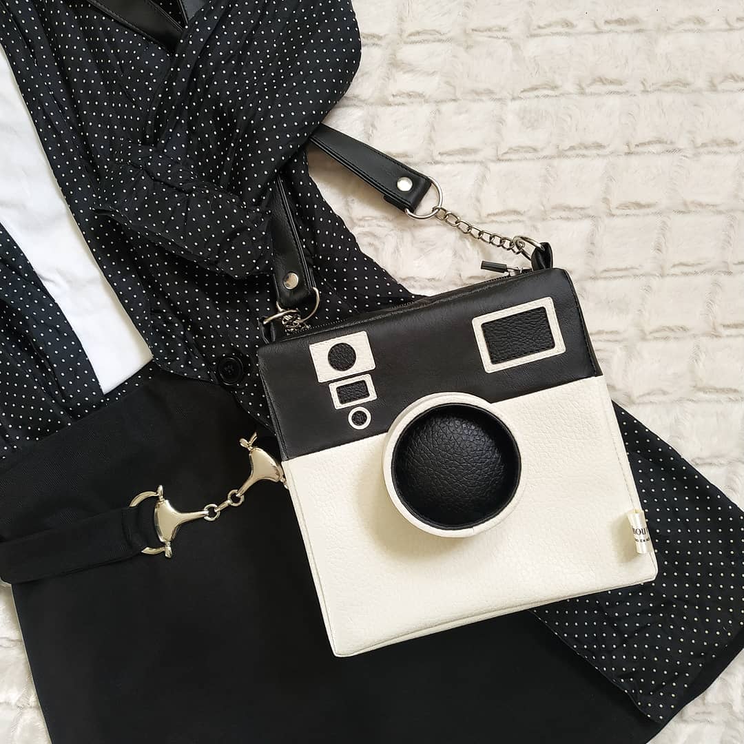 Bolso en forma de cámara fotográfica, cuenta con compartimiento adicional interior y posterior con cierre. CORREA AJUSTABLE.