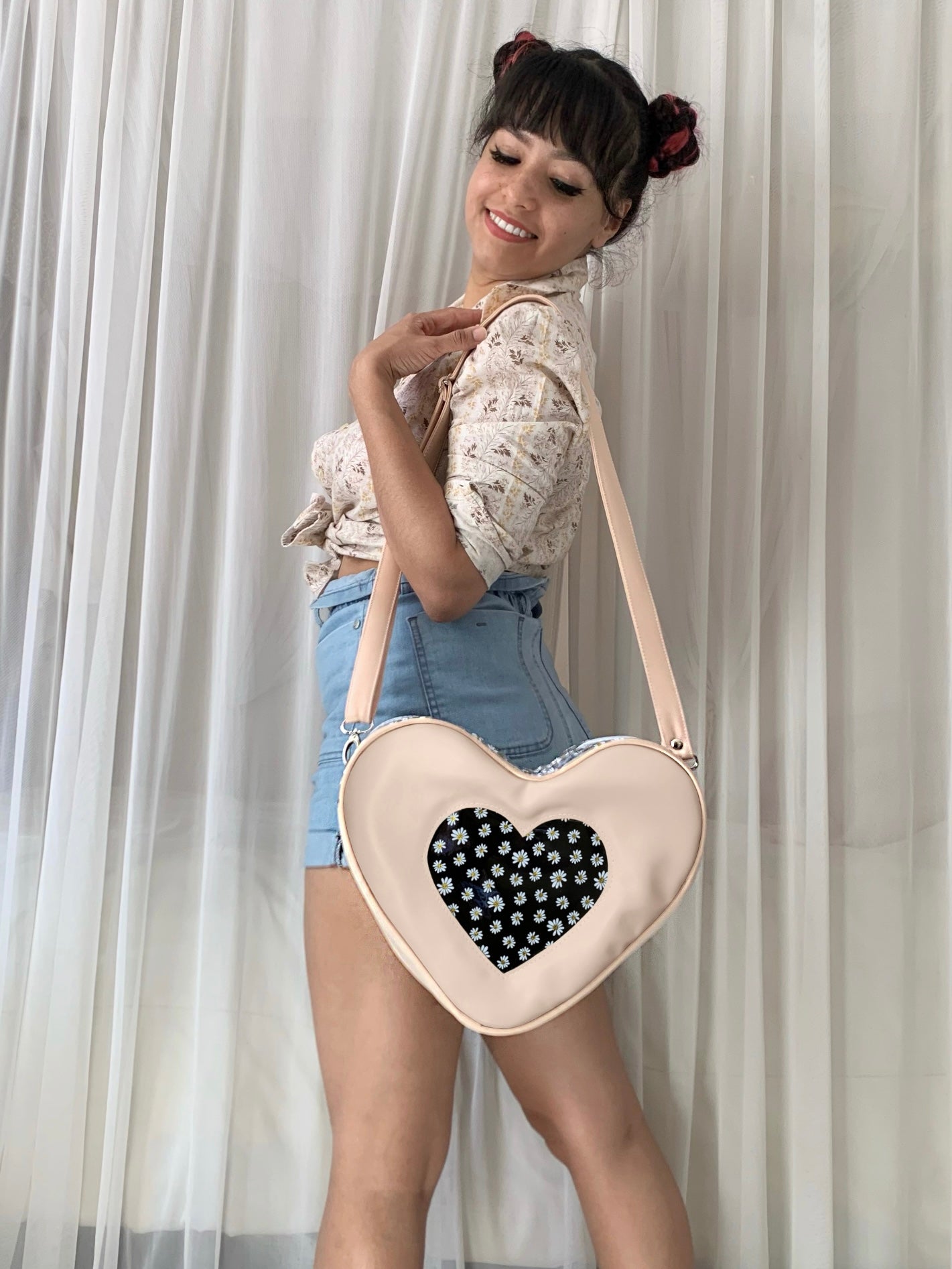 Bolso con diseño de corazón, cuenta con compartimiento adicional interior y posterior con cierre 💕 CORREA AJUSTABLE.